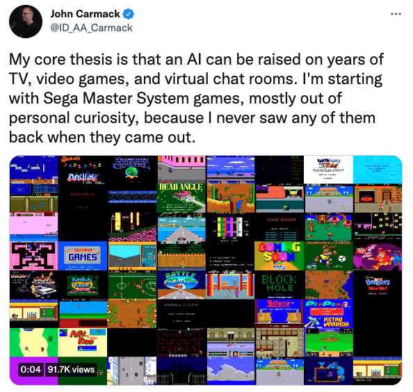 Artificial General Intelligence is like the Terminator or a new species. Better or on par with humans at every conceivable task. It’s a complete fiction right now but John Carmack believes it’s coming and Keen Technologies is going to try and build it.