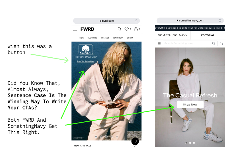 An underlined, 'Shop the new season' doesn't count. It's the least eye-catching CTA I've seen in a while. I'm sad.