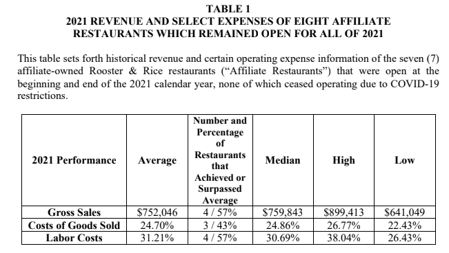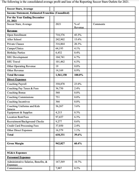 The below table represents the average P&L of 13 corporate owned Soccer Stars outlets in 2021
