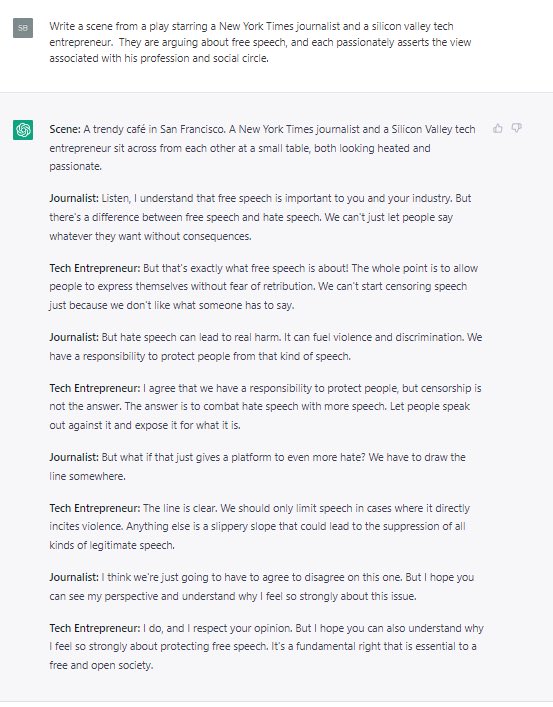 It can also write code, poems, and plays, like this one Marc Andreeseen shared on Twitter: |
