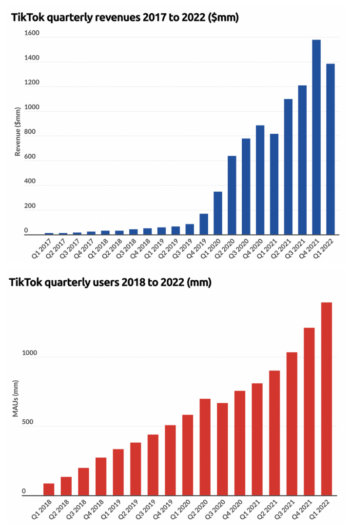 But for parent company ByteDance, TikTok generates less than 10% of total revenue and is one of many hits. A staggering 1.9 billion people use ByteDance products every month and as of last year, it was valued at an incredible $250 billion on secondary markets. At a quarter trillion dollar market cap it was the world’s most valuable private company. (Markets have since turned but it’s still in the top five.)