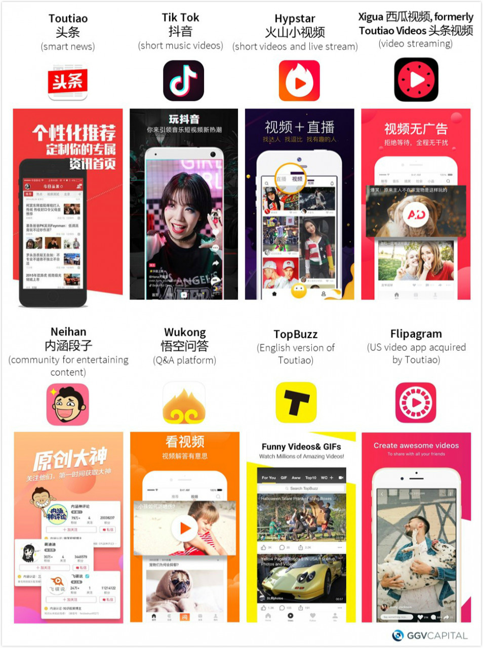 A few of ByteDance’s social products. From Technode way back in 2017. |