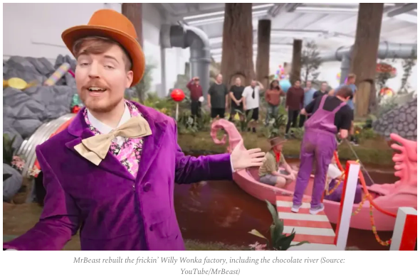 That’s the exact playbook that Jimmy Donaldson (aka MrBeast) is perfecting. Only 24 years old, MrBeast has built an enormous audience by creating viral content like re-building Willy Wonka’s Chocolate Factory, amassing more than 200 million subscribers across multiple YouTube channels (his original channel — with 112 million subs — just made him the most followed person on YouTube).