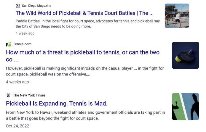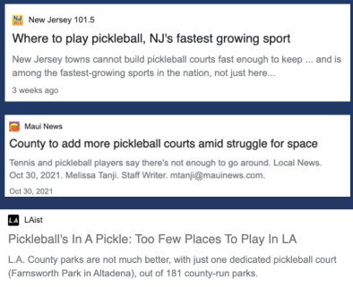 Starting roughly 24 months ago, Pickleball started showing up on the radar of mainstream media. That flurry of activity has since EXPLODED in the last ~6 months, and it’s transformed into a full on frenzy today.