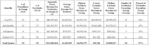 The below table discloses gross revenue by Territory and by Quartile for the Fiscal year ended December 31, 2021. |