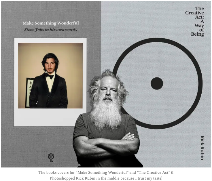Back to Jobs, the Apple co-founder has spoken about cultivating taste in a manner similar to Rubin’s take. There are a few related excerpts in a collection of Jobs correspondences, emails and interviews titled Make Something Wonderful (the compilation was put together by Laurene Powell Jobs and the Steve Jobs Archive, and is available for free).