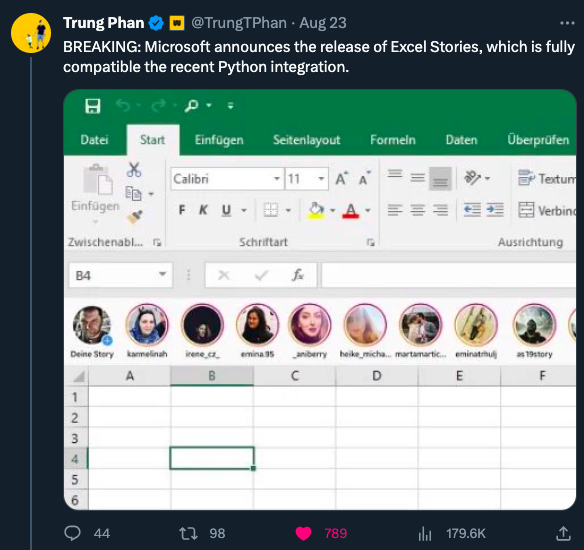 Big news in the professional services world: Microsoft Excel has announced a full integration with the Python coding language (I actually have no idea what that last sentence means but here is a blog post about it). Anyways, I’m waiting for this feature. |