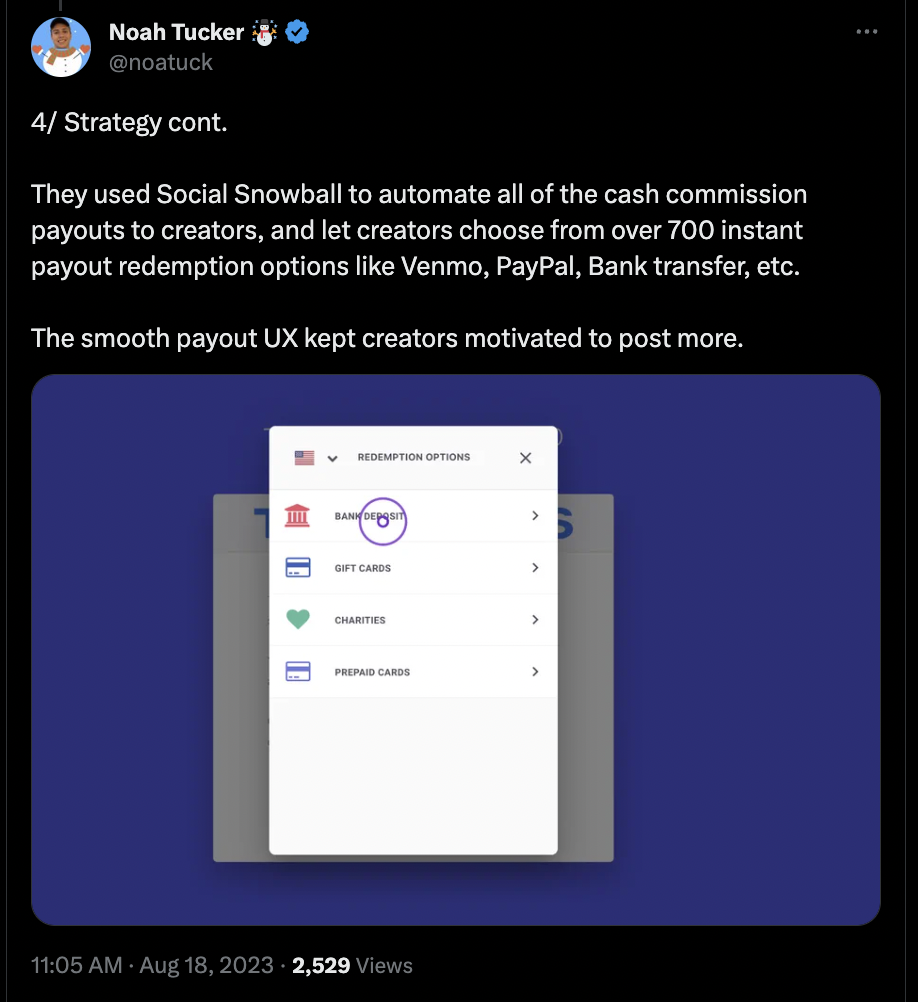 “The smooth payout UX kept creators motivated to post more…”