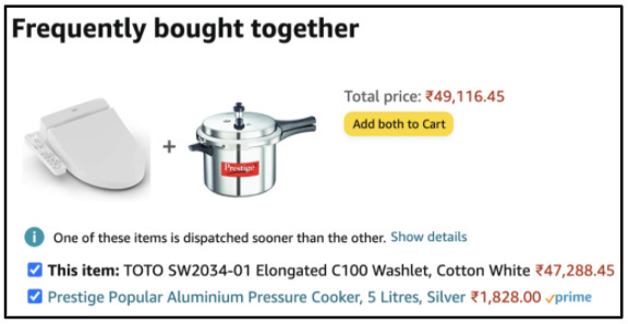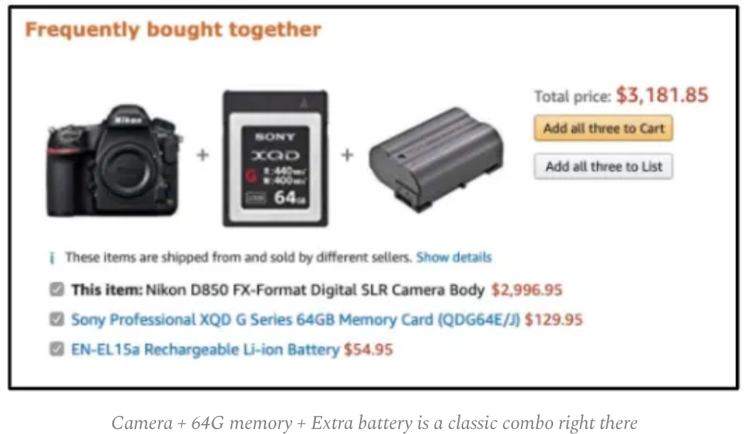 One of the few remaining organic recommendations is the trusty old "frequently bought together" feature. Sometimes the recommendations make sense… |