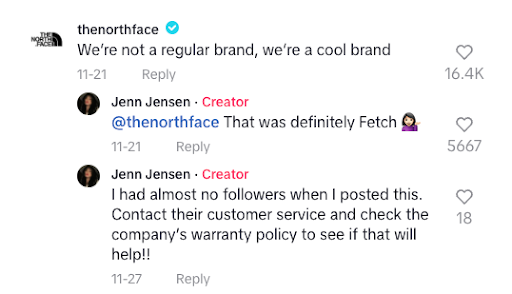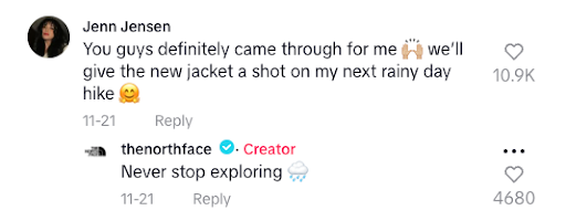 The North Face’s response video garnered over 5M views and thousands of comments from TikTok users who have now become The North Face customers.