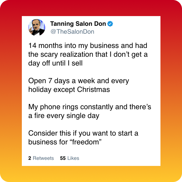 This is a great reminder that oftentimes the early days of starting your own business means you are truly buying yourself a 7 days a week job.