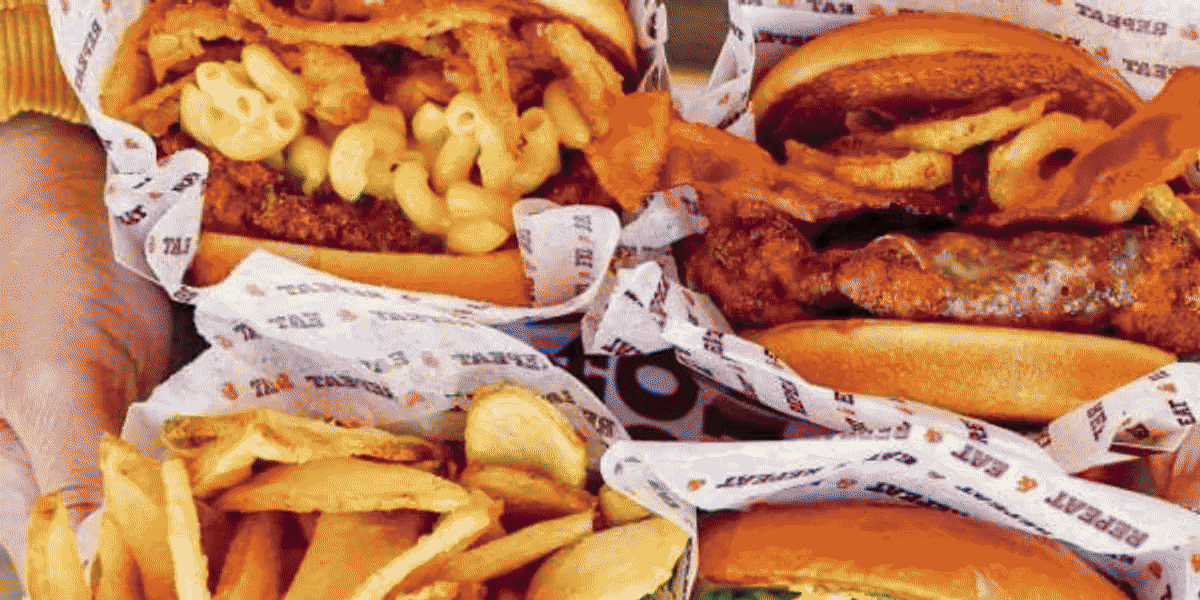 They don’t sell burgers, but they do offer 2 salad options with chicken mixed in.
