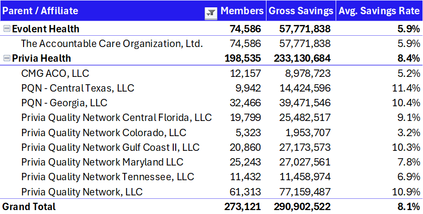 What stands out most from that conversation is how much Privia cares about fit. From the beginning, Privia’s core mantra as a company aims to secure the future of independent practice. Evolent’s ACO portfolio and partner physicians is tailored to that same belief and culture. There’s a reason why Privia holds a 98% physician retention rate dating back to the company’s origins in the early 2010’s. Adding to the general culture fit, MSSP is Privia’s bread and butter, and within that space, they’re not rebuilding an unprofitable operation. In fact, Evolent Care Partners (ECP) is profitable and large, generating 5-6% in savings. We’re not talking rocket science here. No, the simple thesis is that Privia’s physician-led governance, scale, analytics, and tech flywheel can turn a steady baseline into higher sustained performance over a 2-4 year window - not overnight, but steadily through disciplined compounding and 1% better operations every day.