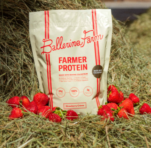 Co-founded by influencer Hannah Neeleman, dubbed “Queen of the Tradwives,” and her husband Daniel Neeleman (son of the founder of JetBlue), mega-popular Ballerina Farm started with meat packing and now sells Farmer Protein Powder and High Protein Farm Flour.