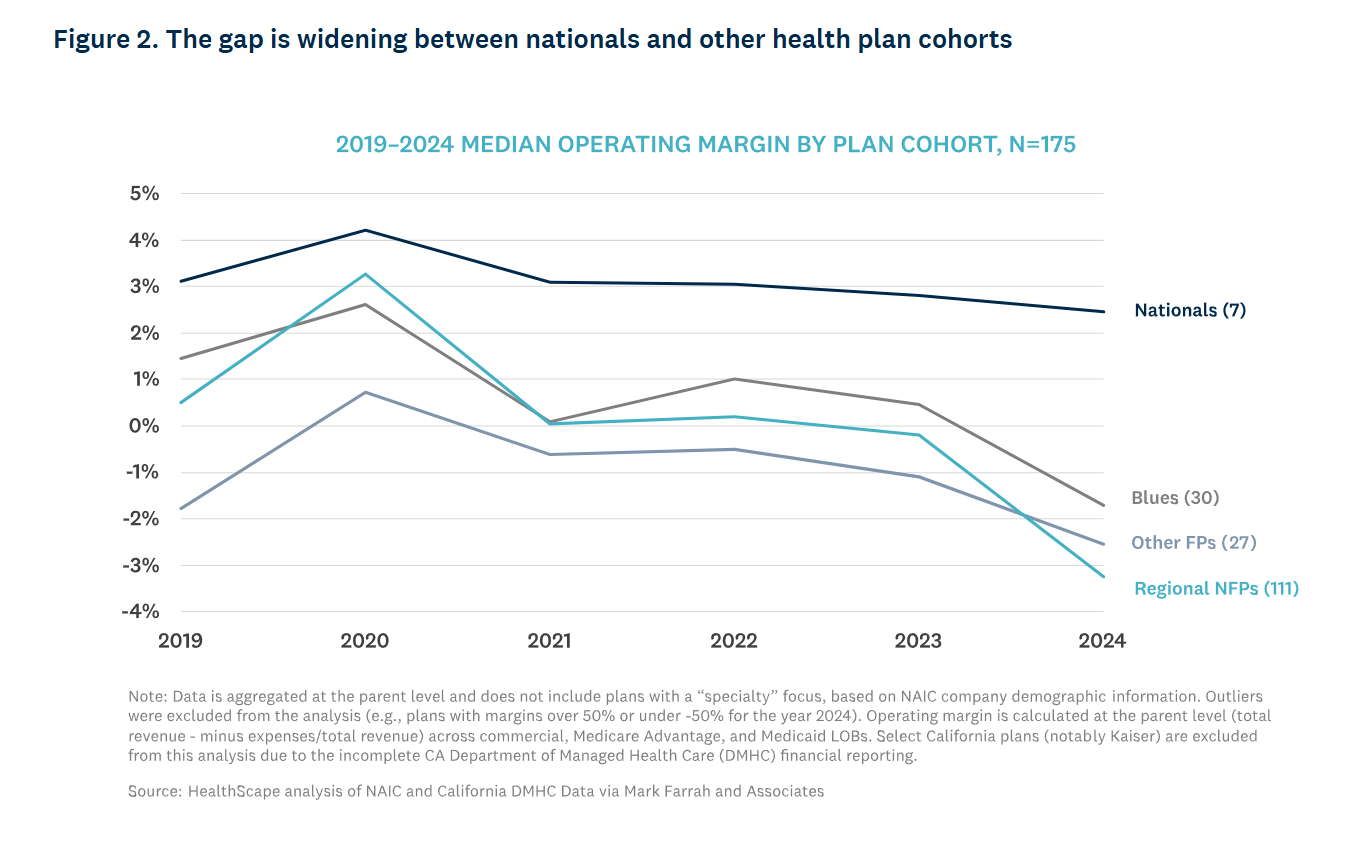Along with the contraction, HealthScape put out an analysis on the unsustainable trajectory of regional health plans noting that many have less than 2 years of runway, and operating results are worsening given rising administrative and medical costs in their markets. All of that stuff you’ve been hearing hit the national carriers? Yeah, it’s exacerbated at the regional level. An unsustainable dynamic - with the OBBA looming - will only cause consolidation for mere survival purposes. The Blues plans seem to be right there with them too given their federated structure.