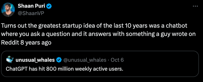 With 800m weekly users, ChatGPT is gonna hit the billy club soon along with Facebook, Instagram, TikTok, WhatsApp, Telegram, YouTube and — damnit — LinkedIn.