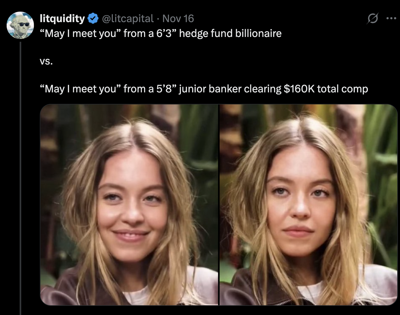But the only reason I’m telling you any of this is because the memes were absolutely out of control including a YOLO DM to Sydney Sweeney and people from both sexes trying the pick-up line….and these absolute gems: