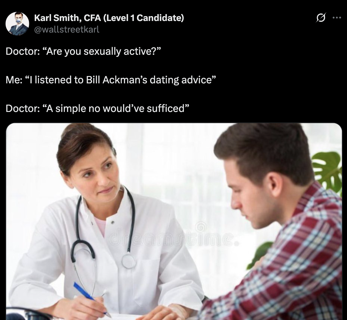 But obviously, the internet went full cynical by noting that Ackman is a billionaire and could literally say anything to close the deal. His advice was for pre-billionaire and single days, though. But then people noted he’s 6’3 and a good-looking dude (his current wife was reported to be seeing Brad Pitt when Ackman started courting her).