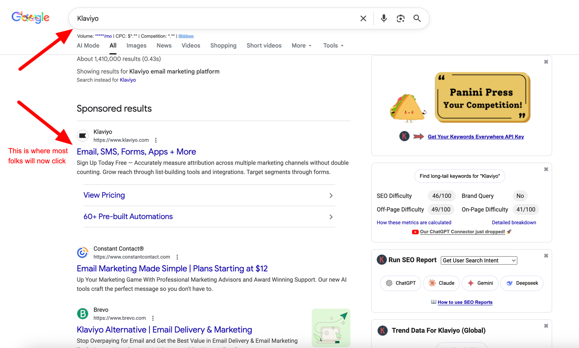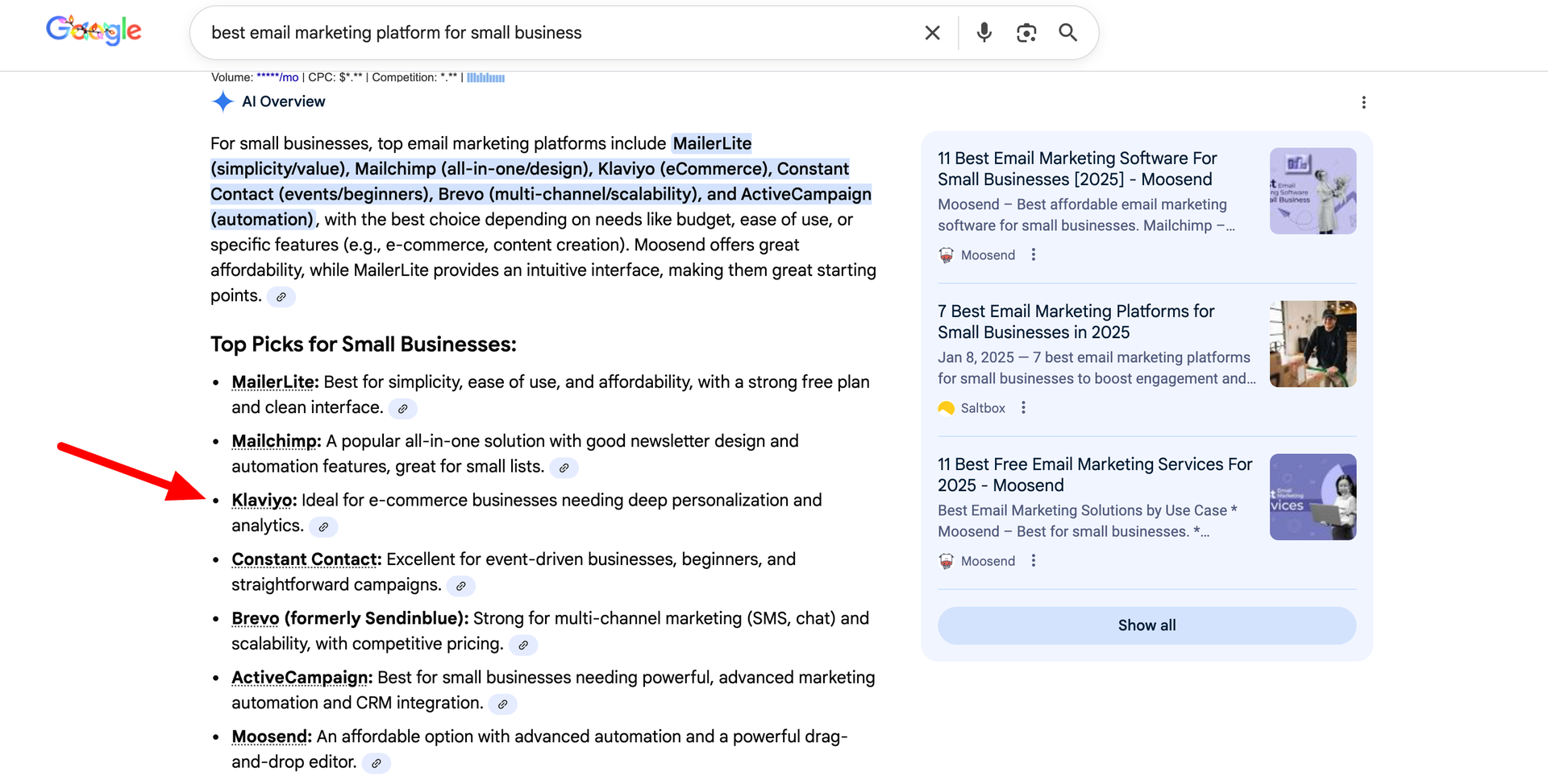 Even in Google’s own AIO, if you click on a brand name in that overview, it takes you to a branded search with a not-so-ad-looking branded ad right there. I’d venture to guess that companies that are dominating in AIO are seeing less organic search traffic and more branded paid search traffic––simply because of the user journey Google has set up there. |