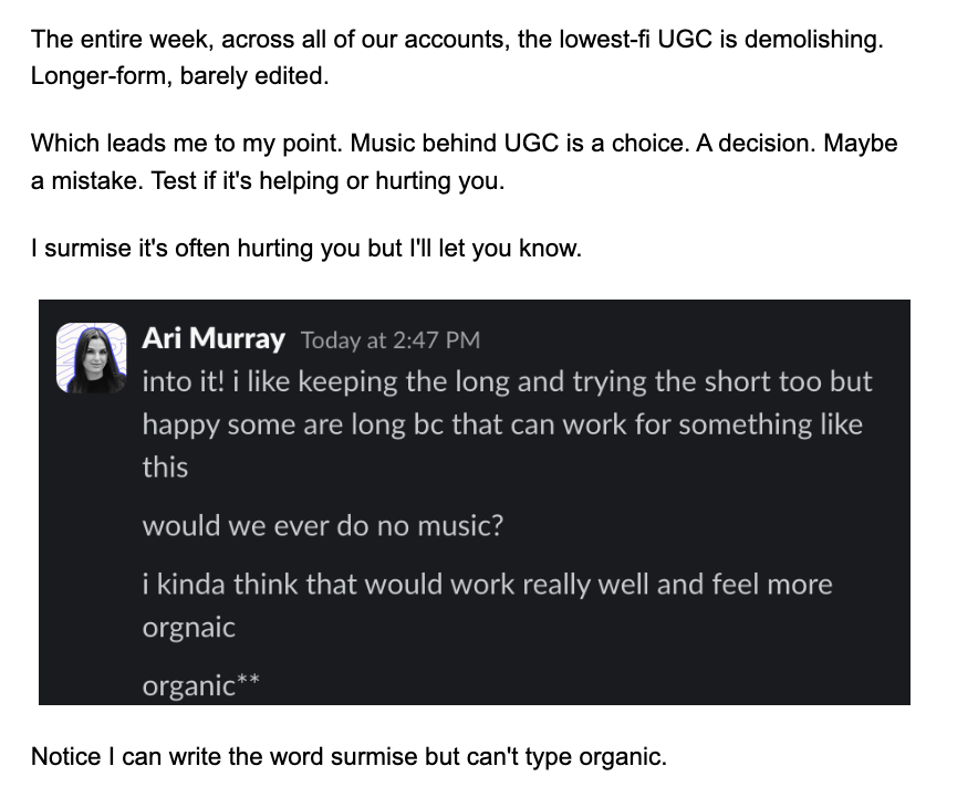 π: Most popular LinkedIn post:engagement has many faces π§ͺ: New channels I tested: AppLovin! A mixed bag honestly. Great for beauty in my experience. Terrible for supplement. IN MY EXPERIENCE!