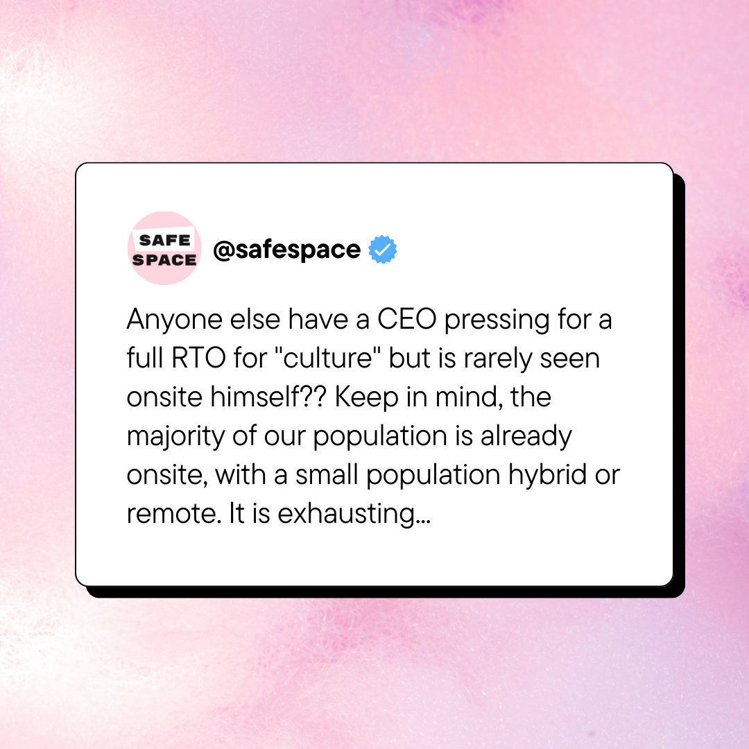 Ah yes, nothing builds culture quite like a CEO mandating togetherness from an empty office. Truly a masterclass in leadership optics!! NOT. Read what members had to say here. And join us in the convo by applying to be a member! |