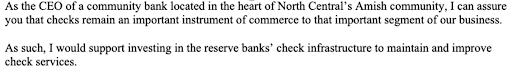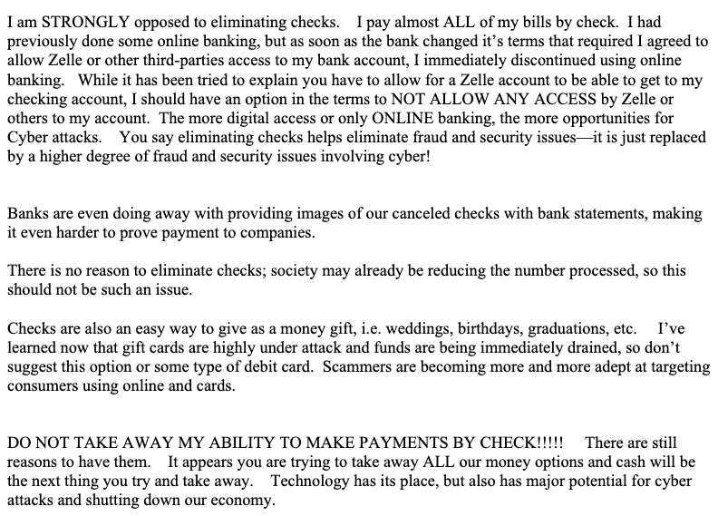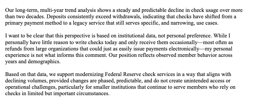 And even though The Clearing House operates RTP, it is also a payments company whose historic founding includes check processing. They provide optionality to customers, and that includes checks.