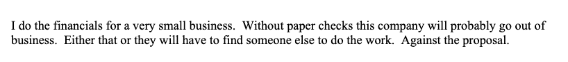 “As long as there are checks out there to be cleared, we will be clearing them,” Jim said. “But if you provide an easy something as easy as a check for consumers and businesses to use, that's when you're going to start to see a real demise. Any other way of doing it is going to have a limited result.”
