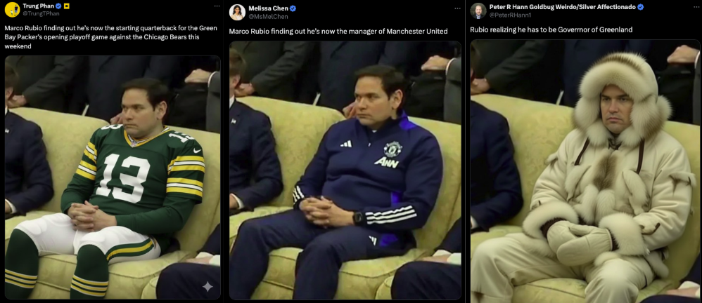 Finally, let’s talk about the “Marco Rubio realizing” memes. There was that episode last year when Ukrainian President Volodymyr Zelensky came to the Oval Office and got into a heated argument with President Donald Trump and Vice President J.D. Vance.