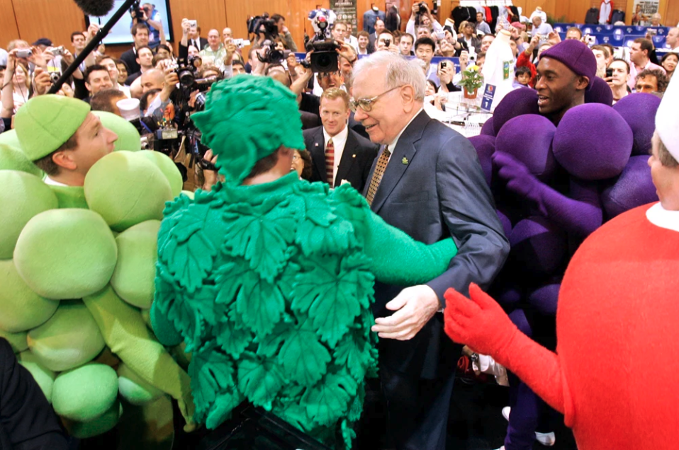 The Fruit Guys and the new top banana, Warren Buffett. (via NBC News) |