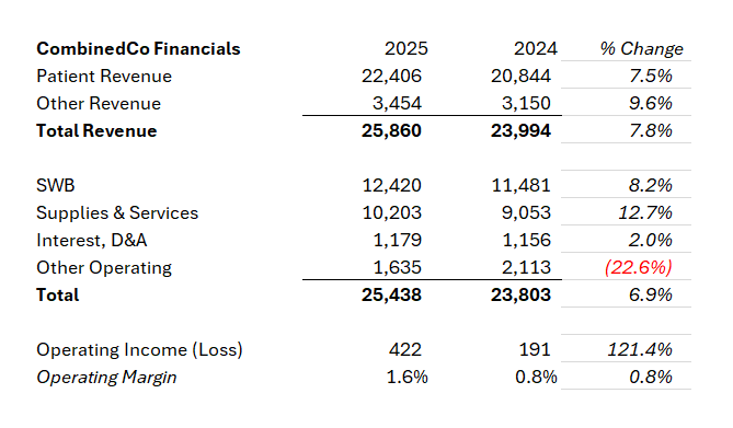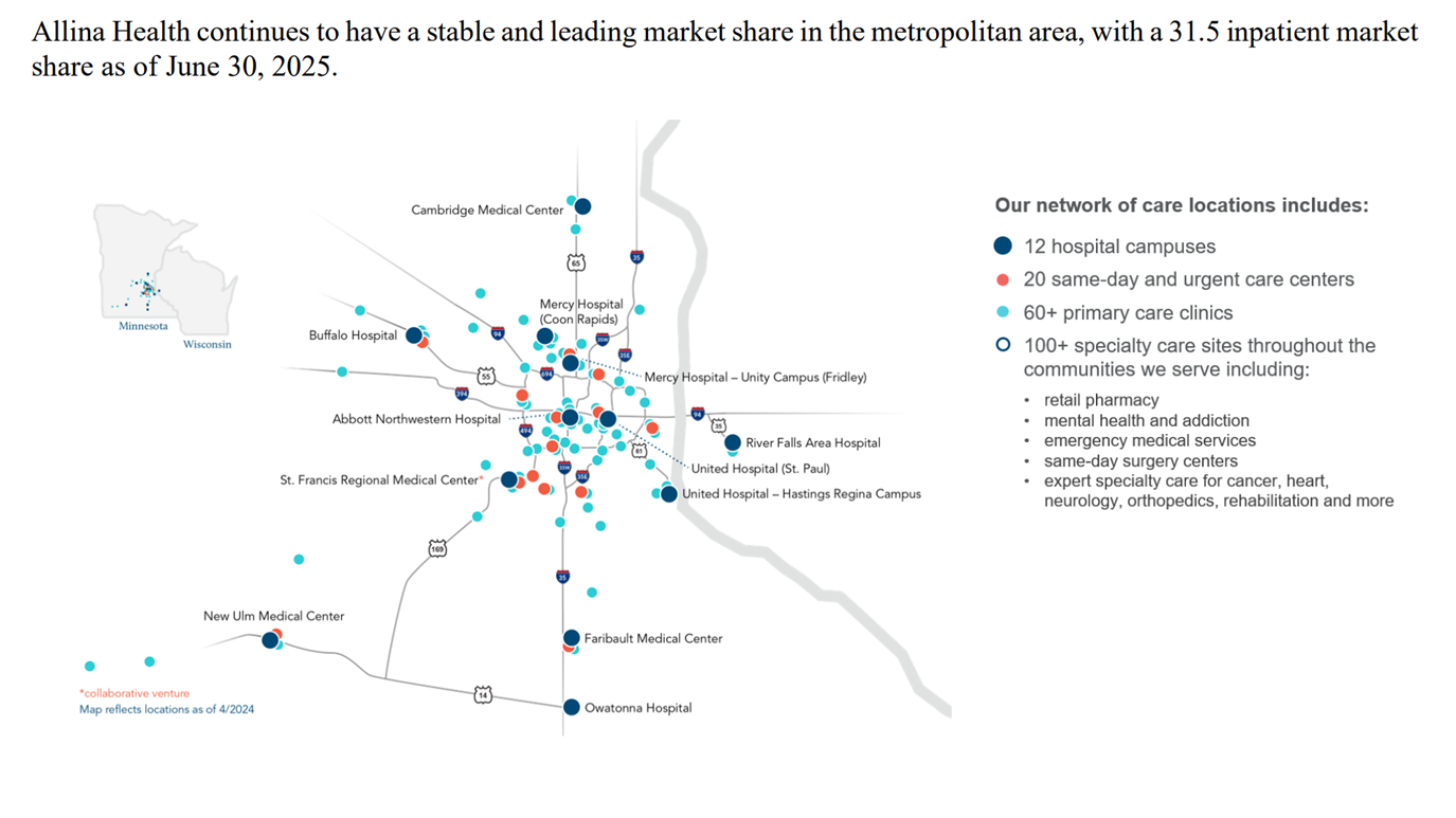 How might this benefit Allina and Sutter? It’s a fun thought experiment. Take for one, the fact that Allina holds a 30%+ inpatient market share but still lost money on operations in 2025 AND 2024, and was downgraded with a negative outlook because of persistent losses. So maybe Allina has the inpatient prowess but doesn’t hold the ambulatory assets needed to compete in the new age health system game. Because the health system has been losing money on operations, maybe they’re looking for a capital partner and more sophisticated health system to help finance and guide them through the next journey of health system transformation. Maybe some of this deal is still a simple arbitrage game where Allina can refinance bonds at better Sutter rates (pure conjecture). Capabilities I can think of that are worth mentioning, and incentive for merging, include: