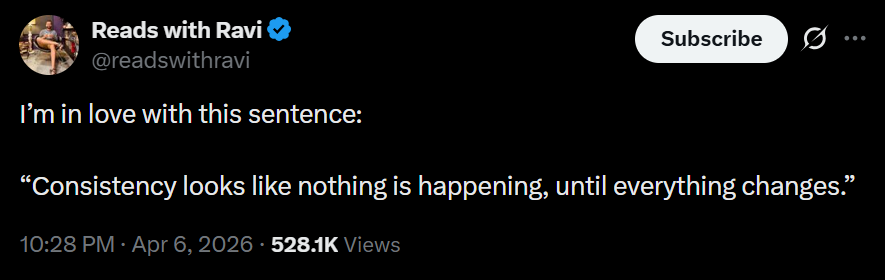 I’m a sucker for a good quote. Today, Reads with Ravi caught my attention and had me thinking about all of the things I have been intentionally consistent about, and this is so important to keep in mind when you’re in the middle of a journey.