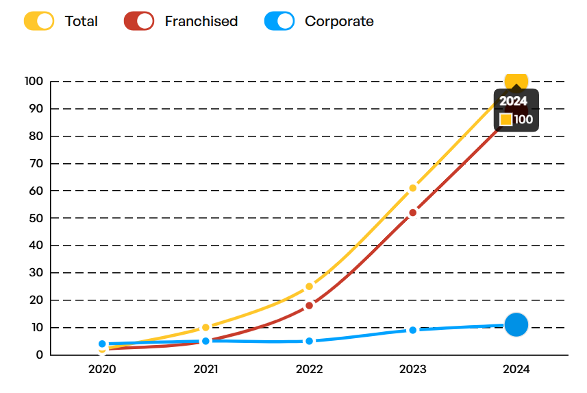 Founded in 2015 by Matt Sharp, Megan Sharp, and Lincoln Brown; franchising since 2019