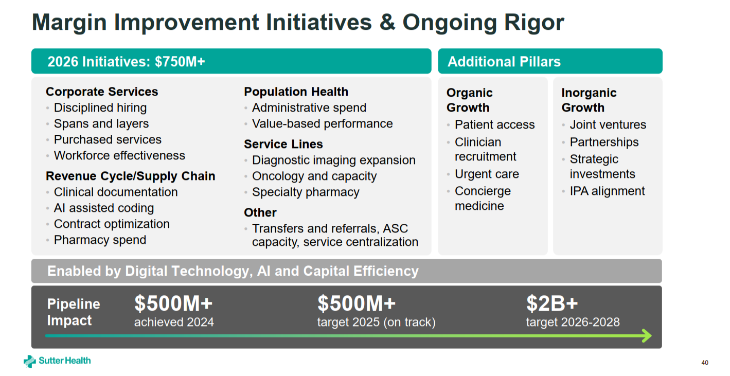 Specifically, we’re collaborating on taking a closer look at the operator playbook Warner Thomas at Sutter might deploy at Allina, given his history at Ochsner. Warner, if you or anyone at Sutter is reading this, feel free to reach out and let us know how close - or off base - we are! Let’s dive in. P.S. Tampa, May 19th. I'll be keynoting the 2026 Transformation Summit.