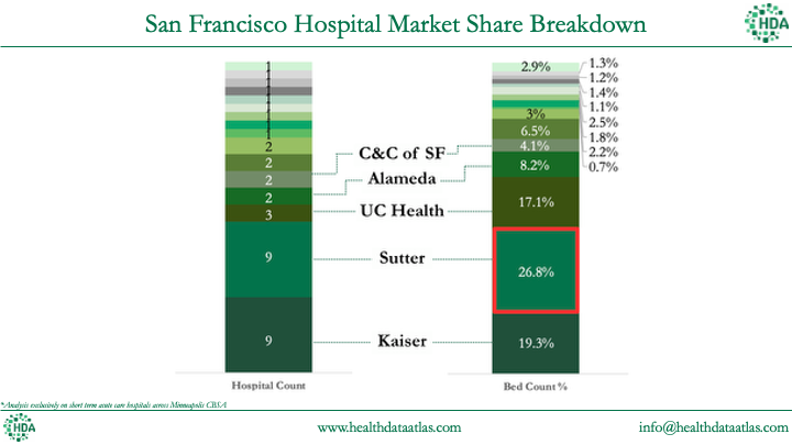 Today we’re doing a deep dive on Sutter-Allina with the folks over at Health Data Atlas who I know really well. Note this isn’t a sponsored post but they helped provide market intel and context for the strategic decisions that may be happening in the coming days post merger.